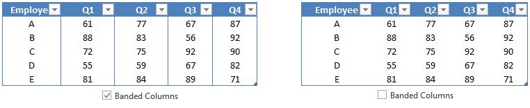 "Table Style Options" of Table Formats in Excel